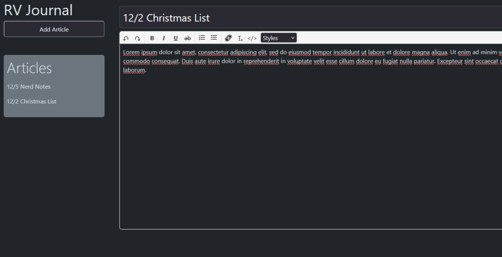 Using React, I create a single page journal app. It uses a React wsyiwyg editor for writing and formatting and saves data to the browser’s localStorage.